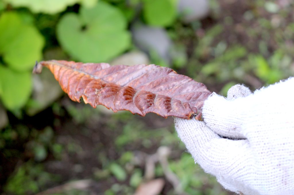 こちらは枇杷の葉。「土の色は落ち葉の色だよ」と父。