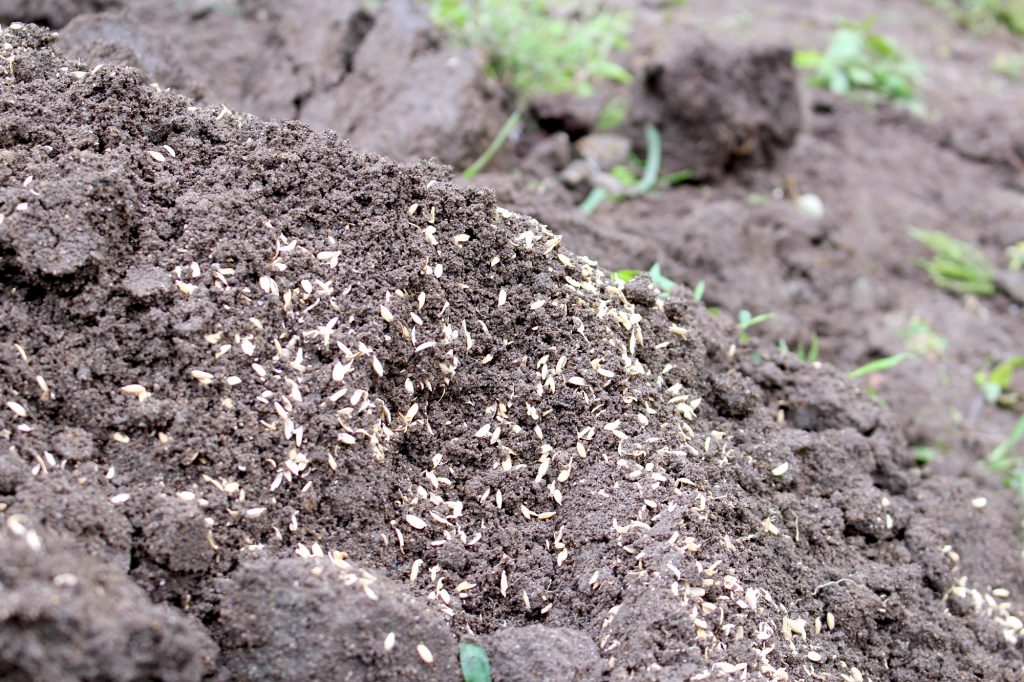 上から軽く土をかぶせて籾殻(もみがら)を加えます。籾殻や米糠を入れておくと、微生物が寄ってくるらしい。