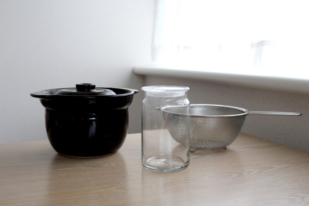 水分を含むとかさが増すので、余裕のある大きさの入れ物にたくさんの水で浸すのがおすすめ。うちでは蓋付きの保存ビンで浸水しています。