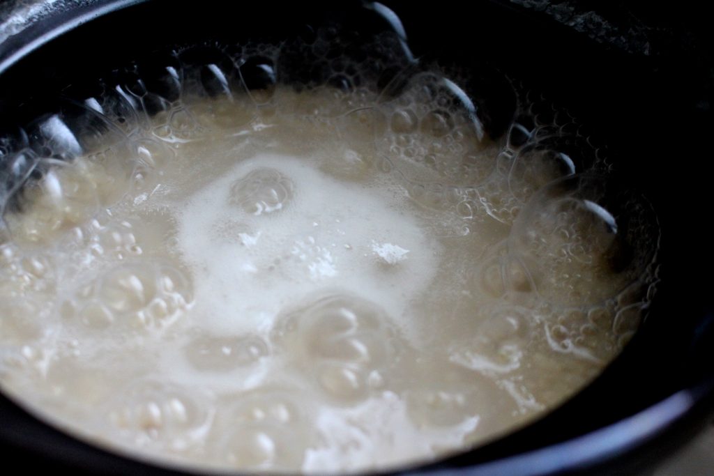 玄米は白米よりも多めの水が必要です。好み的にももちもちした食感が好きなので、たくさんの水と一緒に火にかけます。