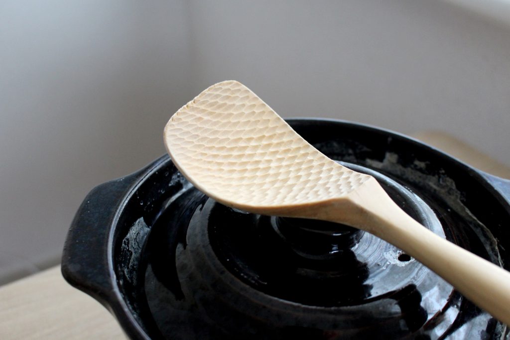 何年か前に出会ったお気に入りのしゃもじ。木の風合いが土鍋によく合います。