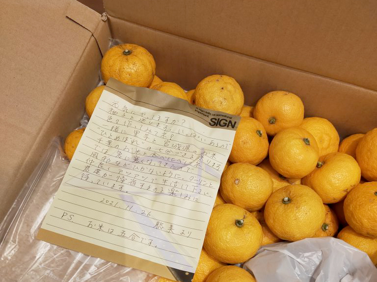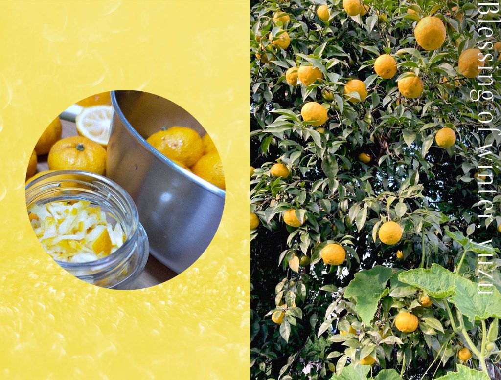 冬。一年の集大成として、または次の春に向けて、果樹たちはいっせいに実を着ける。わたしの実家でも柚子がたくさん成ったようで、両親が収穫して送ってくれました。