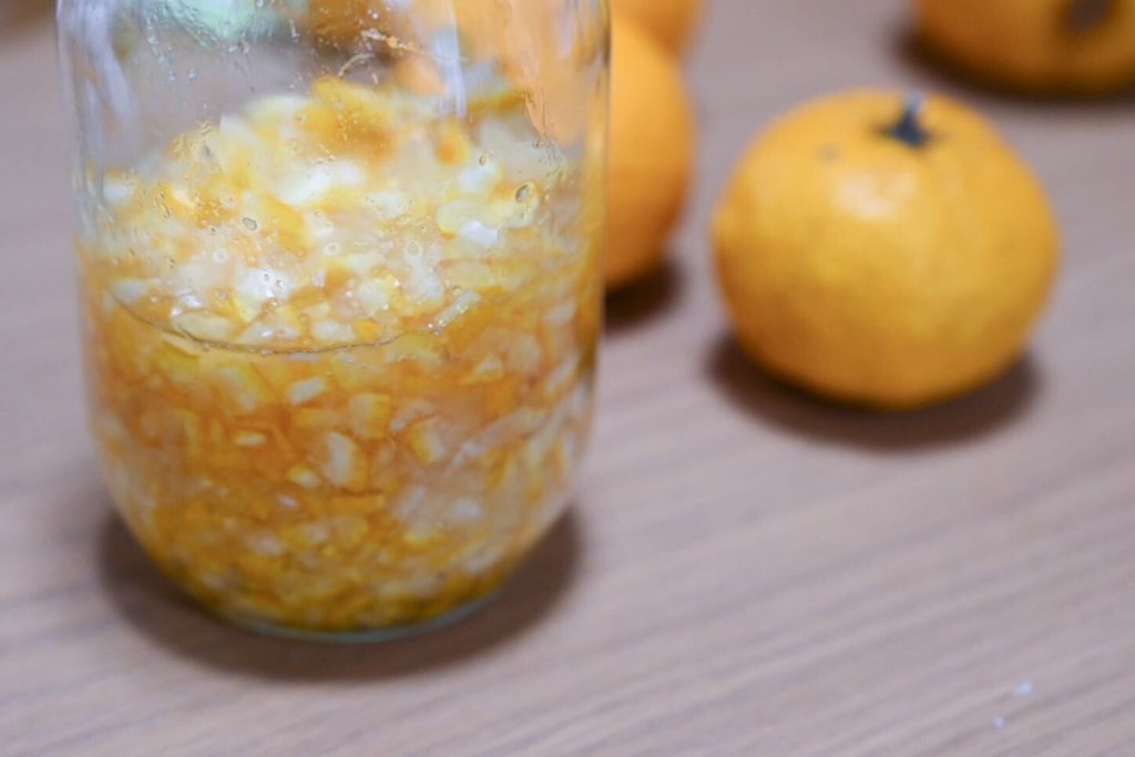 カットした柚子は蜂蜜に漬けました🍯 なんとメンバーのご実家が養蜂をされていて、おいしい蜂蜜を持ってきてくれました🥺