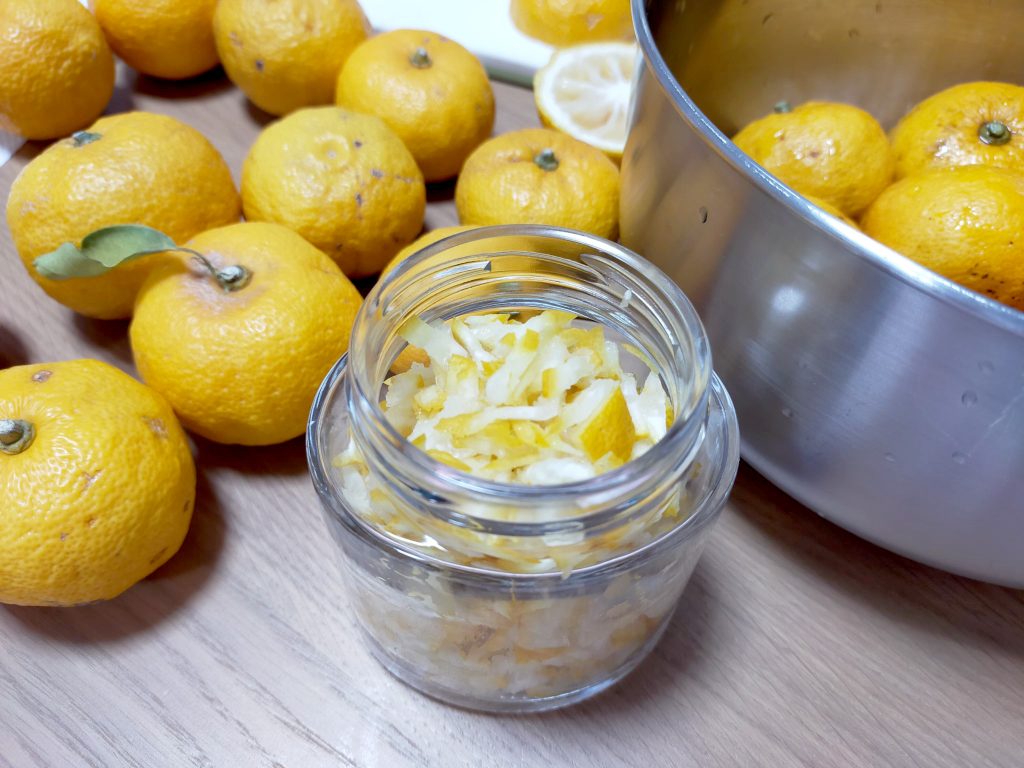 お喋りしながら、柚子を切ったり絞ったり🍊